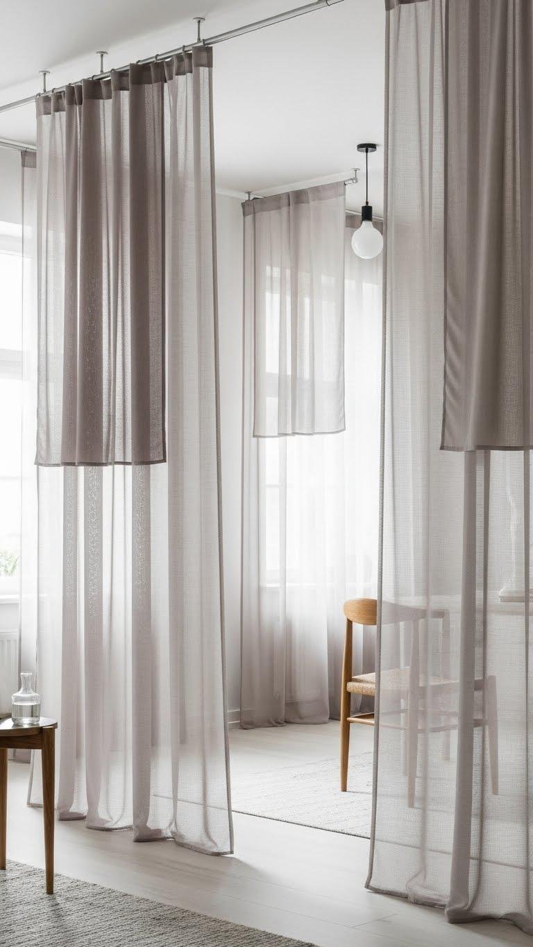 Often overlooked, sheer curtains let you flood your apartment with soft, diffused light while keeping privacy intact. Choose translucent fabrics in airy neutrals to maximize daylight, create visual height with ceiling-mounted rods, and layer lightweight panels for movement.