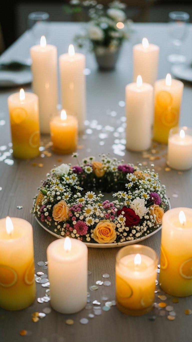 Candles, Confetti, and Petite Petal Centerpiece