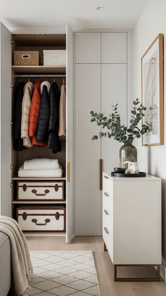 You’ll create curated surfaces that feel luxe yet liberated, balancing soft materials and clean lines so storage becomes a stylish, effortless ritual.