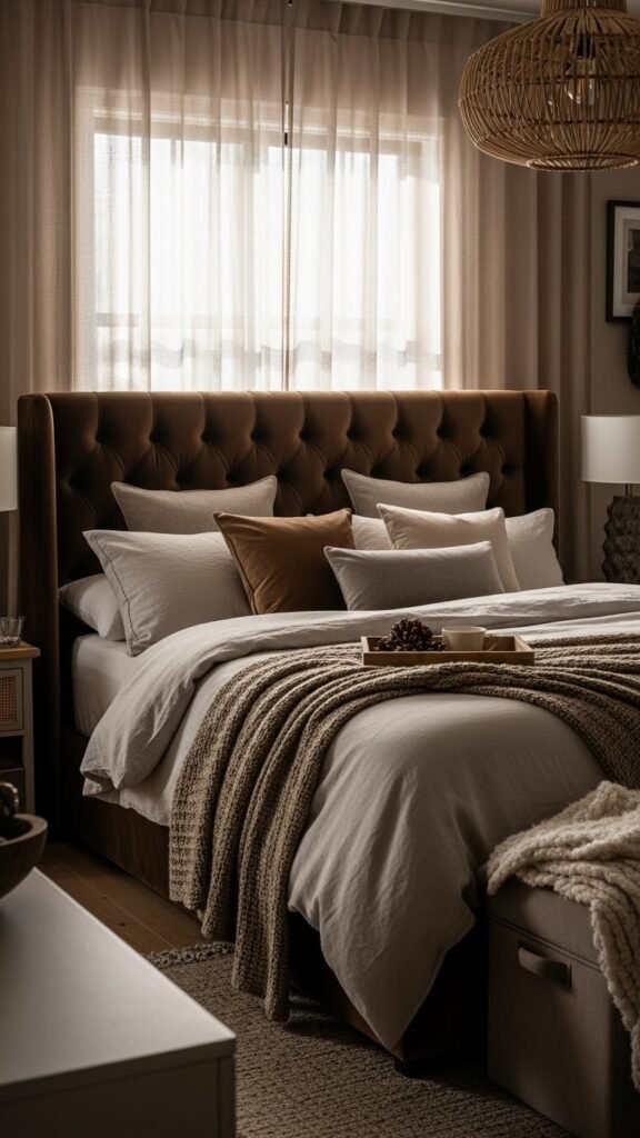 1 bold upholstered headboard can transform your bedroom into a cozy winter retreat; velvet reads as sumptuous and moody while linen feels relaxed and natural. Choose velvet headboards for dramatic texture and rich color that elevates luxe comfort, or pick linen headboards to keep a breezy, liberated vibe.