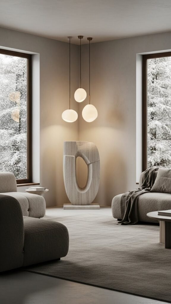 When you choose minimal artwork and sculptural lighting, think of each piece as a design punctuation mark that clarifies the room’s mood without shouting for attention.