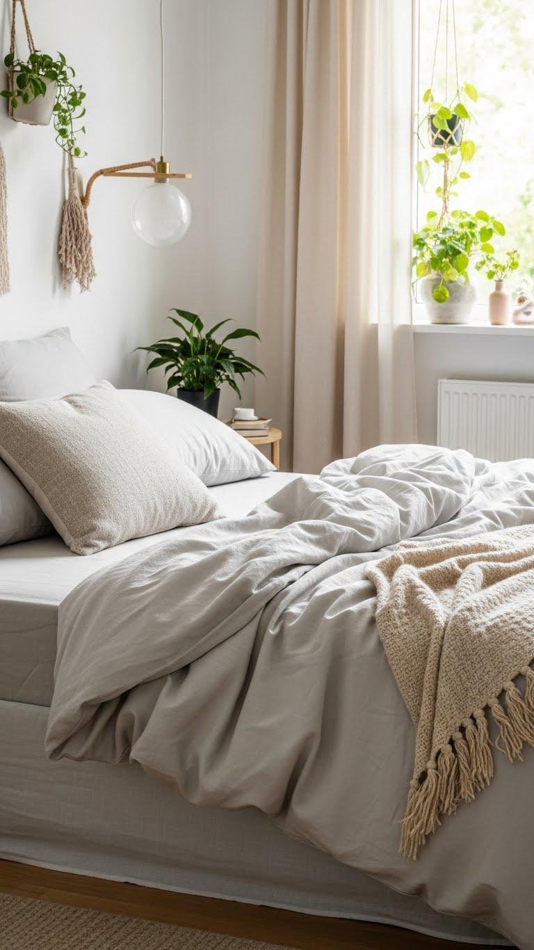 Pair the warm, tactile feel of Canyon Clay ceramics with bedding that breathes: swap in organic cotton or bamboo sheets to keep the bedroom feeling light, natural, and quietly curated. You’ll choose sustainable bedding that’s soft, low-impact, and easy-care.