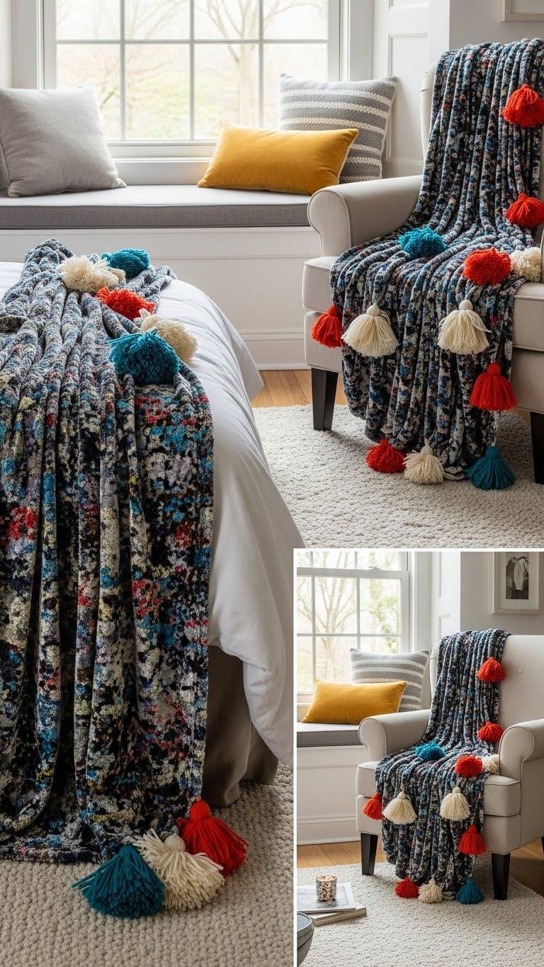 Often you’ll reach for a plush throw to instantly dial up warmth and texture—drape it over the foot of the bed, the arm of a chair, or across a window seat to create inviting layers that look effortless.