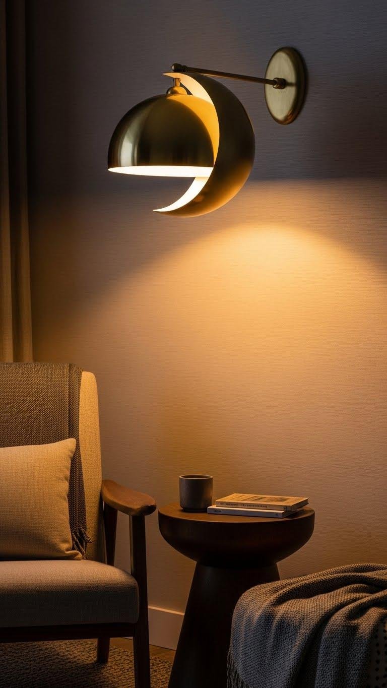 Place Half-Moon Lamps for a Touch of Metallic Glow