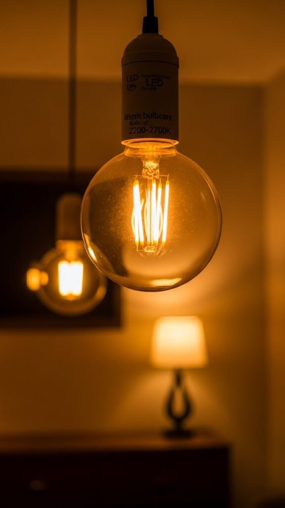 Frequently, the simplest switch you can make is swapping in dimmable warm‑color bulbs — they let you dial color temperature and brightness to match any evening activity, from bright prep for reading to a soft amber glow for winding down.