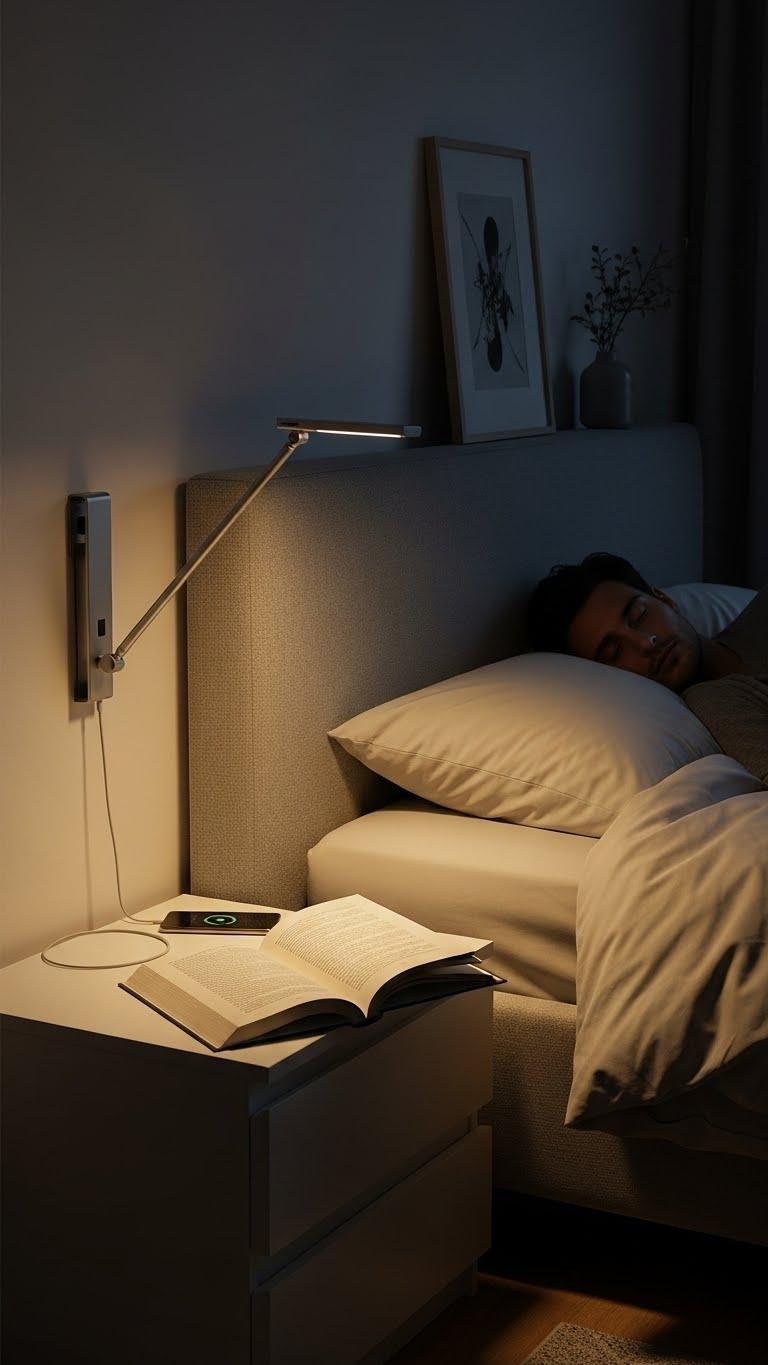 Position a dedicated bedside task light so you can read without disturbing your partner or straining your eyes.