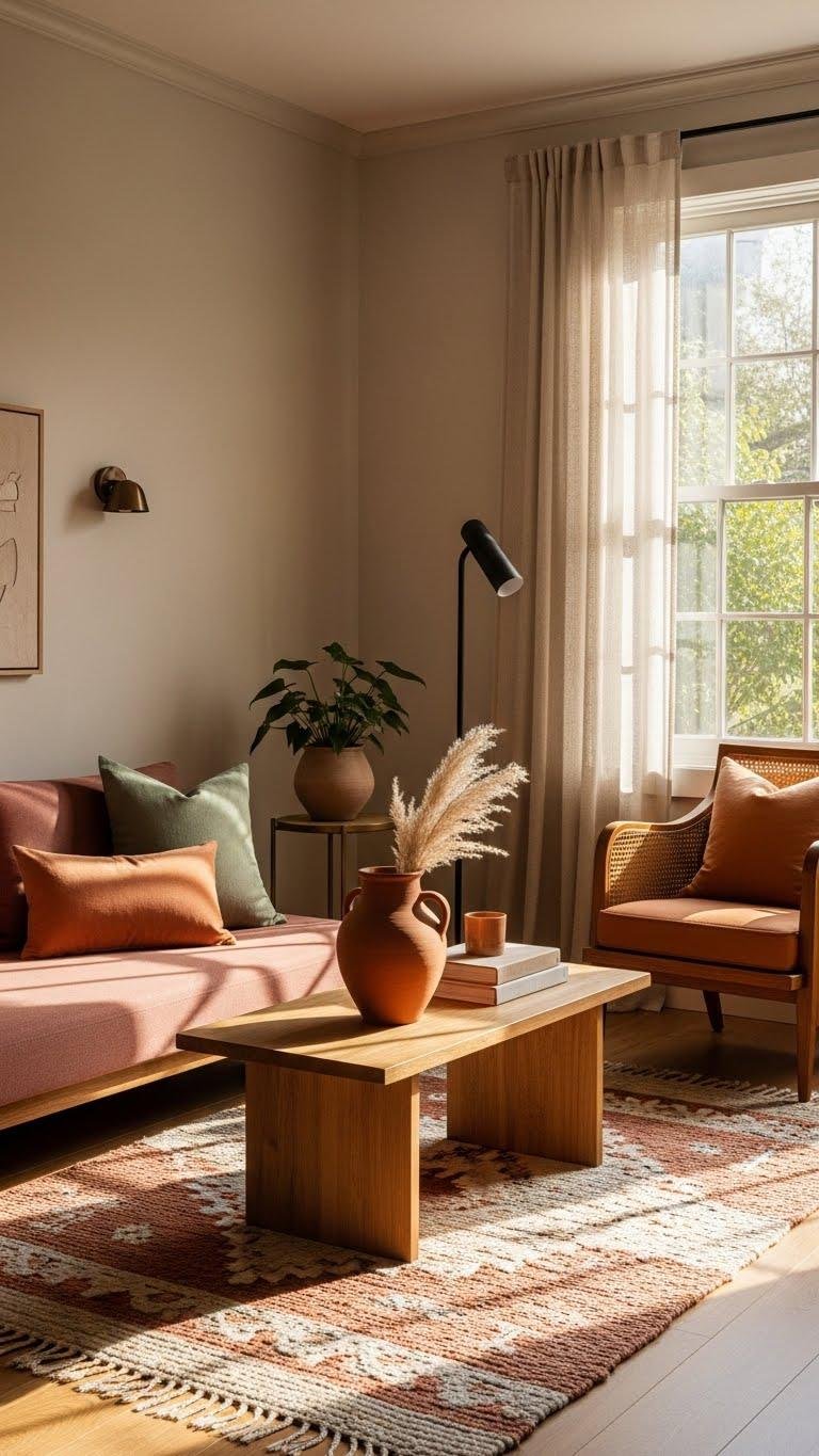 You’ll choose sunset neutrals and muted terracotta to ground spaces, pairing them with matte finishes and natural wood. This curated palette frees you to craft serene, sunlit rooms that feel lived-in, intentional, and quietly adventurous.