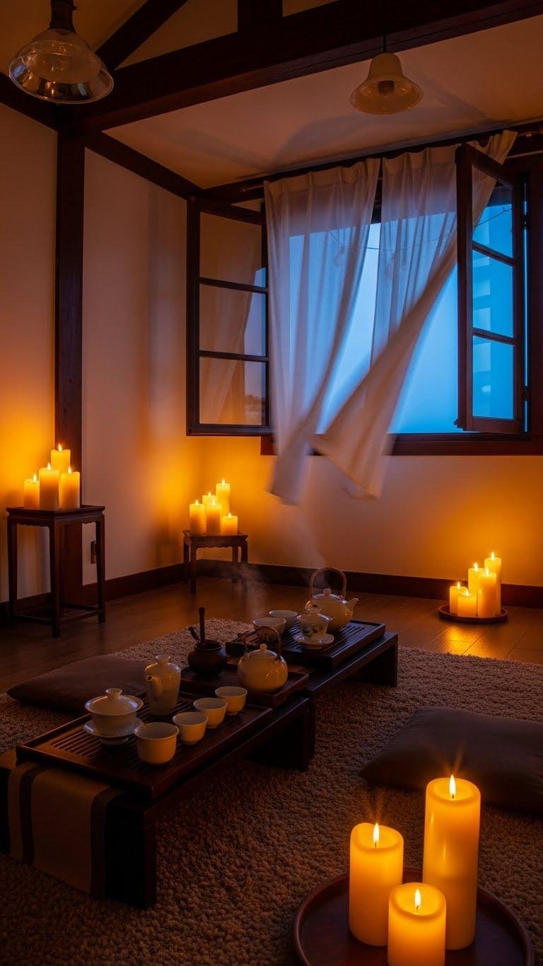 You’ll choose vessels, groupings, and scented matches for ritualistic simplicity, arranging tea ceremony–inspired trays and porcelain beside flicker. Let shadows linger, breath steady, windows cracked for fresh air, and your space become a liberated, gentle refuge.