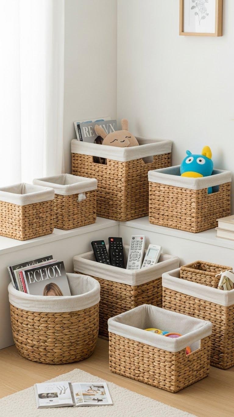 Use Baskets to Contain Clutter and Add Texture