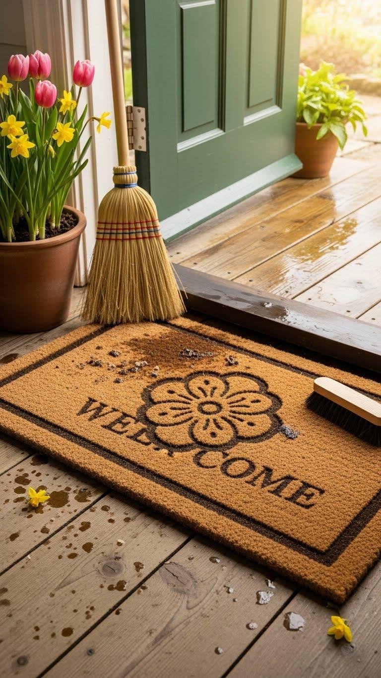 Swap out your plain welcome mat for a woven coir one with a subtle floral motif to give your entry an instant spring refresh.