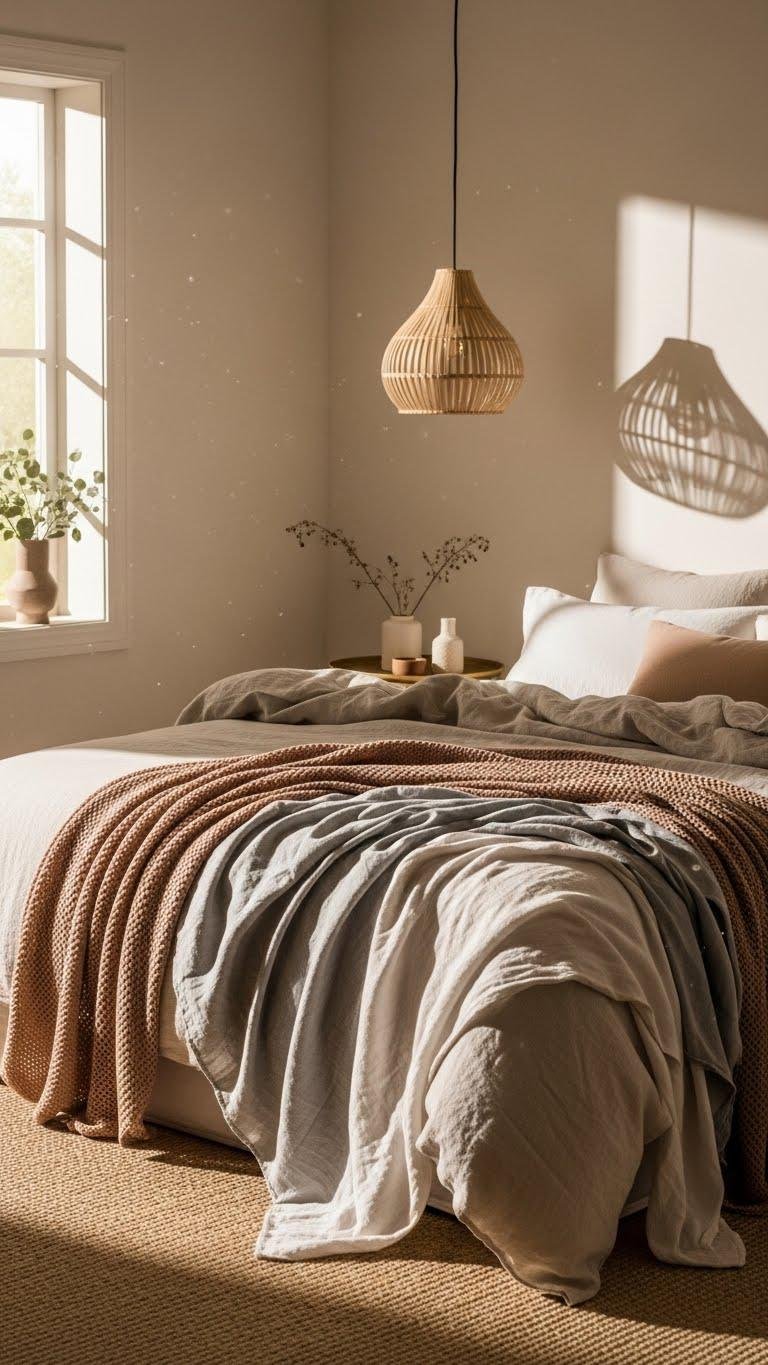 Mix textures—linen, cotton—and keep palettes airy so your space feels open, relaxed, and free.