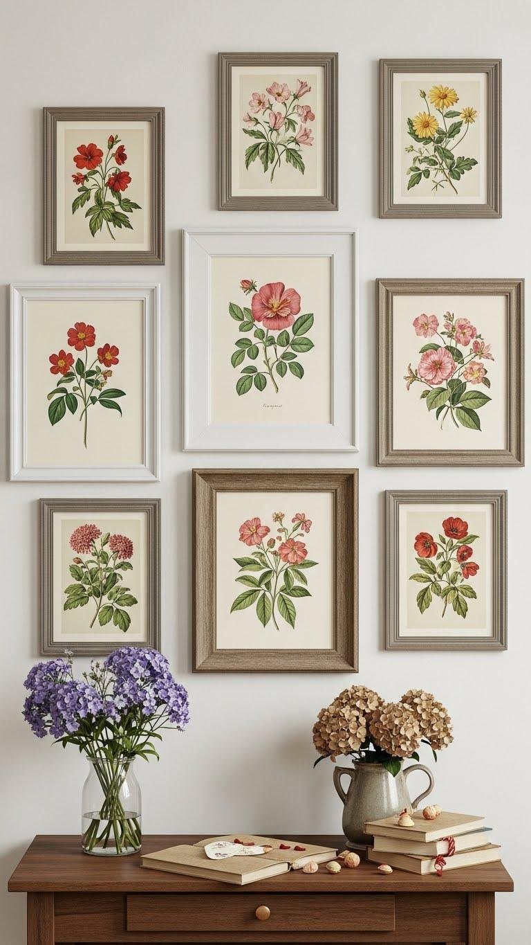 Hang a set of botanical prints to anchor a room with quiet color and timeless charm; choose frames and matting that let the artwork breathe and complement your existing palette. You’ll mix pressed botanicals and vintage flower art for texture, pairing simple frames with a statement of ornate frames where you want drama. Rotate pieces seasonally so your space stays fresh and free.