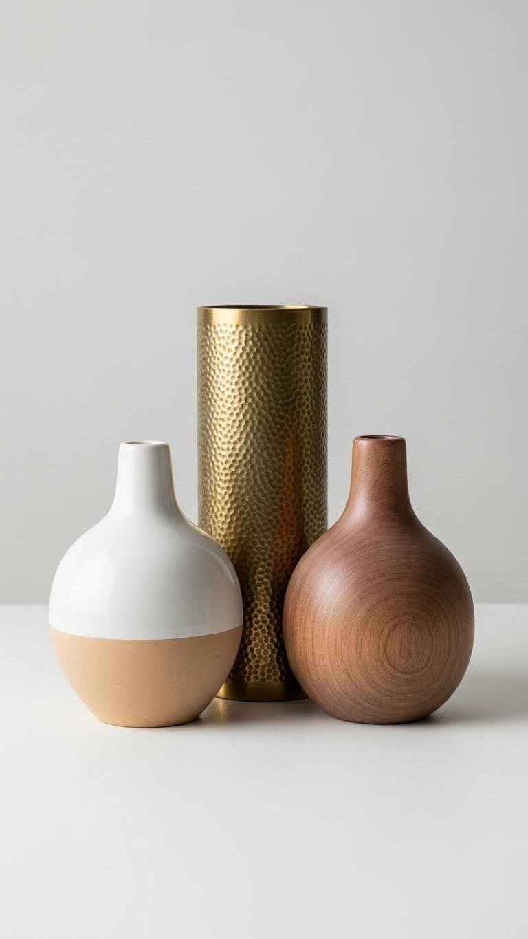 You’ll choose a matte vase or soft clay piece that reads deliberate, leaving space to breathe and style with confident restraint.