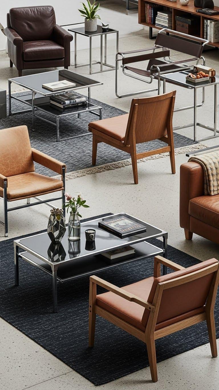 Start by combining pieces that speak different languages—leather, glass, metal, and wood—so each material highlights the others’ strengths without competing. You’ll mix contrasting finishes and balance proportion with layered silhouettes, letting sleek chrome meet worn oak and soft hides. Choose focal pieces, repeat a hue, and trust intuition; the result feels free, intentional, and uniquely yours.