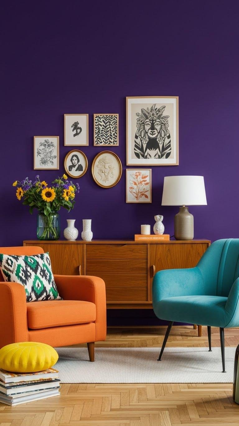 Bring a bold wall into the mix to give your eclectic layers a confident backdrop; a saturated accent color anchors vintage pieces and modern finds alike. Choose fearless hues, use color blocking to define zones, and prefer matte finishes for depth and less glare.