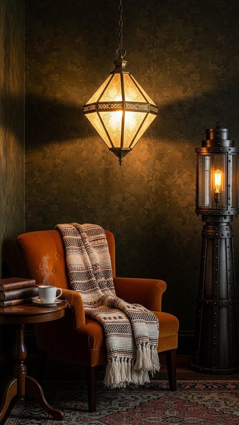 You can carry the tactile richness of textured walls into the sphere of light by choosing antique fixtures that echo the room’s materials and mood. Let victorian pendants add ornate warmth over a reading nook while industrial lanterns bring rugged contrast to open spaces. Mix finishes sparingly, balance scale and height, and trust instinct to create a liberated, cohesive glow.