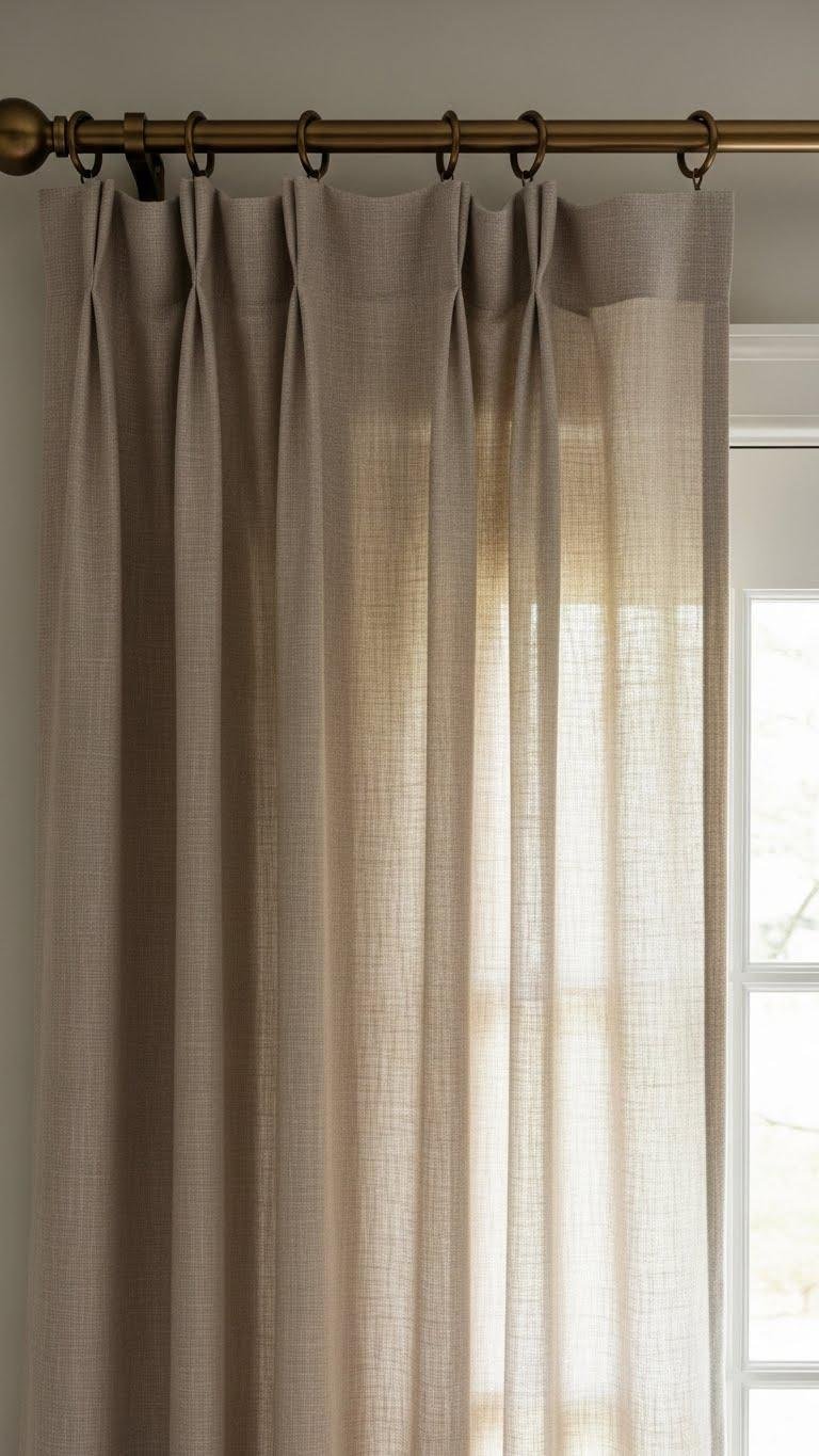 Softening the entrance with linen curtain panels hung on bronze rods gives your entryway an instant lift: the natural, slightly slubby texture of linen contrasts beautifully with the warm metallic finish, creating a modern-yet-inviting frame for your doorway or window. You’ll enjoy the sheer texture that filters light, the metallic contrast that anchors the look, and the effortless, free-spirited polish it brings.