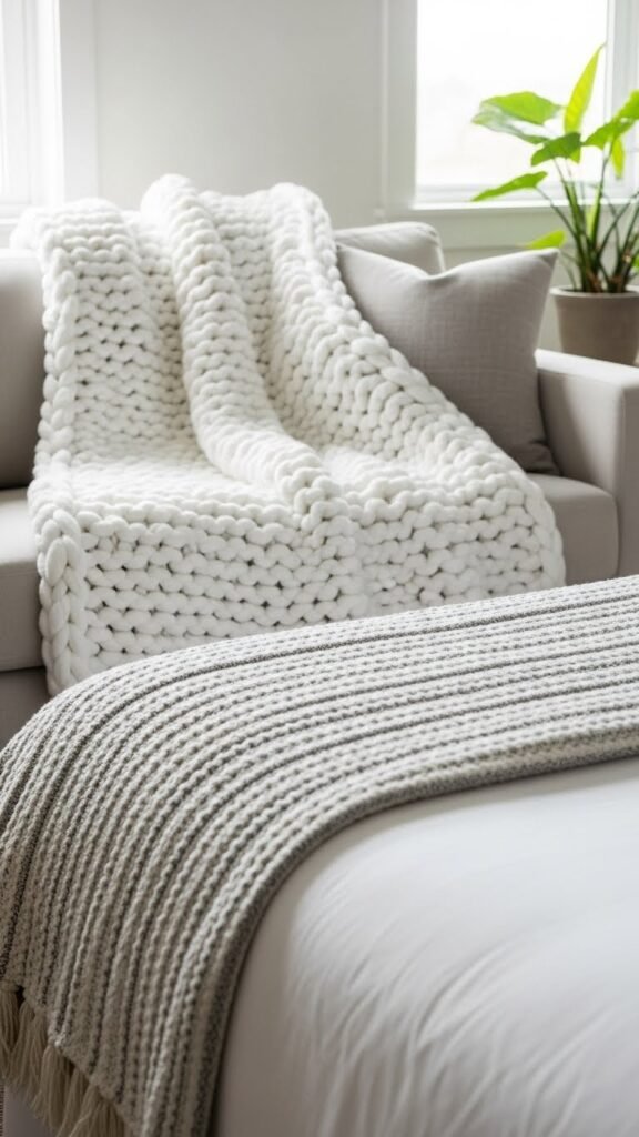 Chunky White Throw Layering for Cozy Vibes
