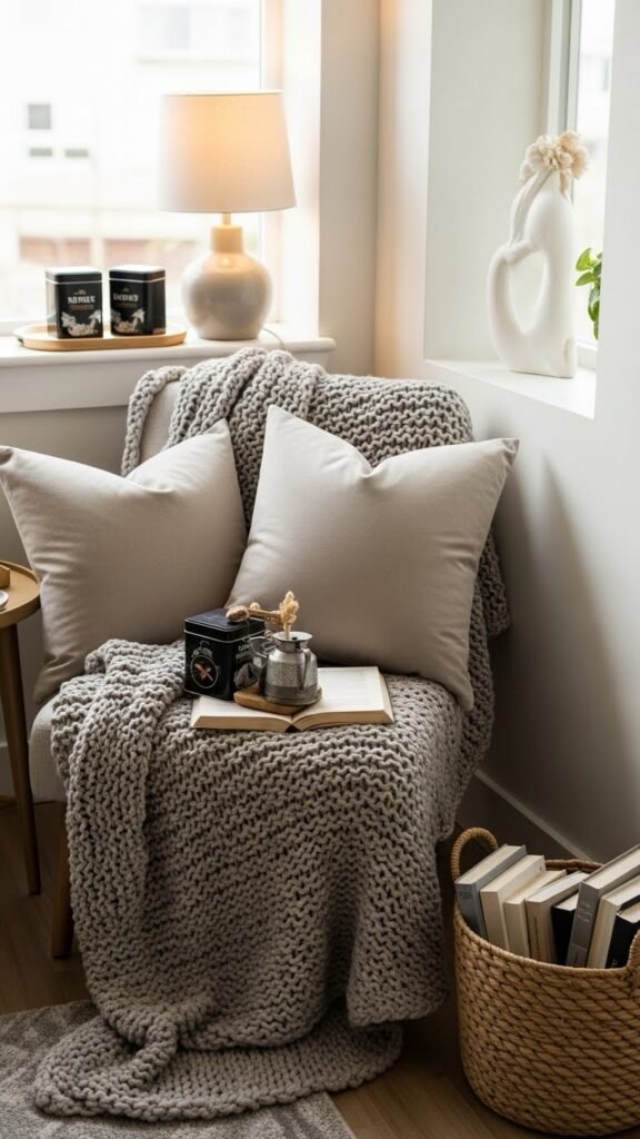 Cozy Reading Nooks With Chunky Blankets