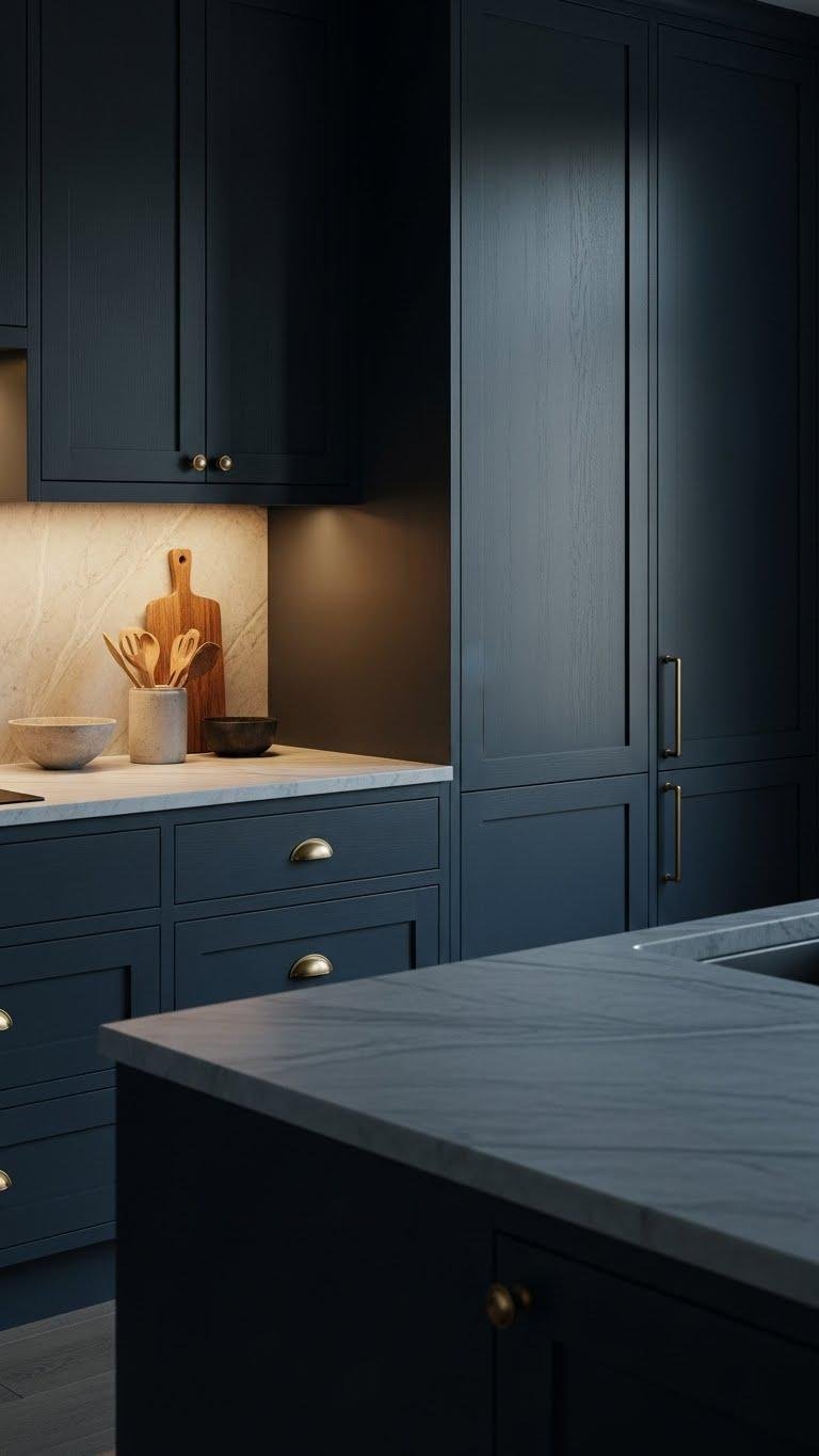 Color is everything in a moody blue kitchen: deep navy or ink-blue cabinetry grounds the room while soapstone countertops add a soft, natural matte that keeps the palette elegant rather than heavy. You’ll choose matte cabinetry and navy accents, layer ambient lighting to reveal texture, and embrace easy soapstone care routines. The result feels bold, calm, and free.