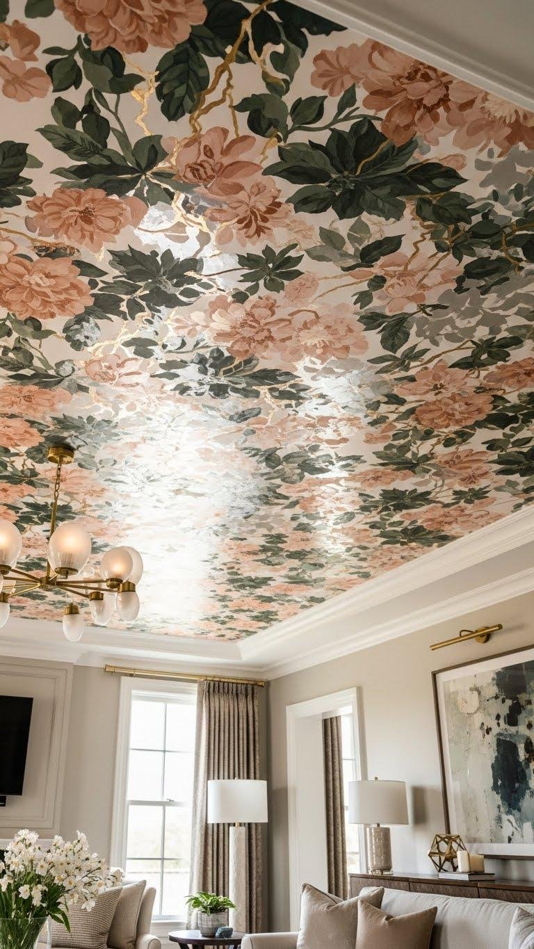 You’ll love floral ceilings for playful scale, or pair bold prints with metallic plaster accents for luxe texture—bold, freeing choices that elevate any room.