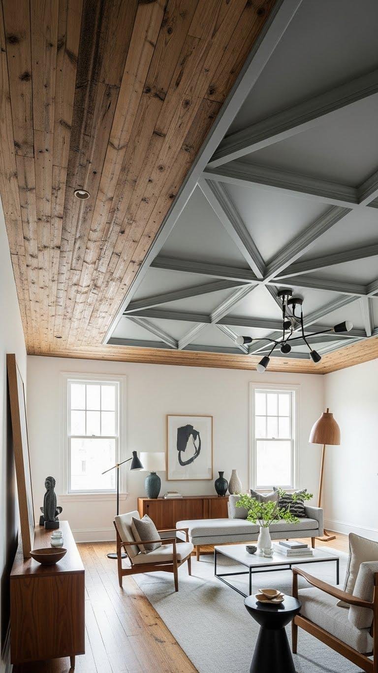 You’ll love mixing reclaimed planks for warmth with painted geometric coffers for modern edge. Keep lines clean, finishes matte, and scale bold. This approach frees spaces, creates continuity, and turns ceilings into intentional design statements you control.