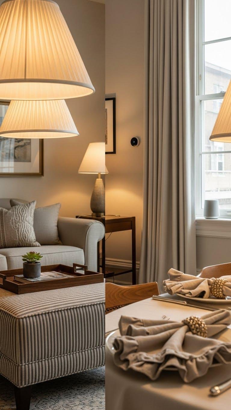 You’ll love pleated lamp shades, tailored ottomans, and crisp curtains that read classic yet liberated.