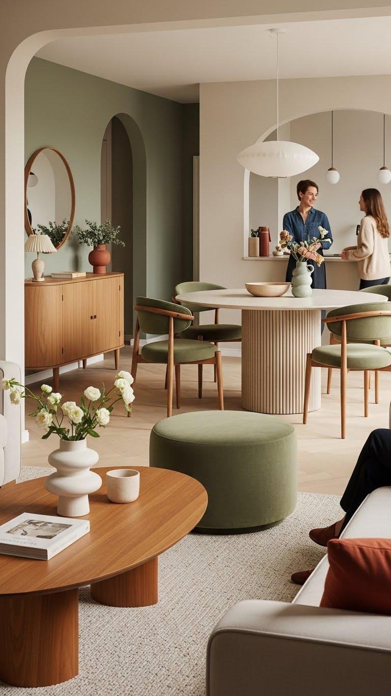 You’ll favor convivial layouts, pair rounded ottomans with a circular pedestal table, and choose materials that invite touch, creating relaxed, liberated rooms that celebrate circulation and connection.