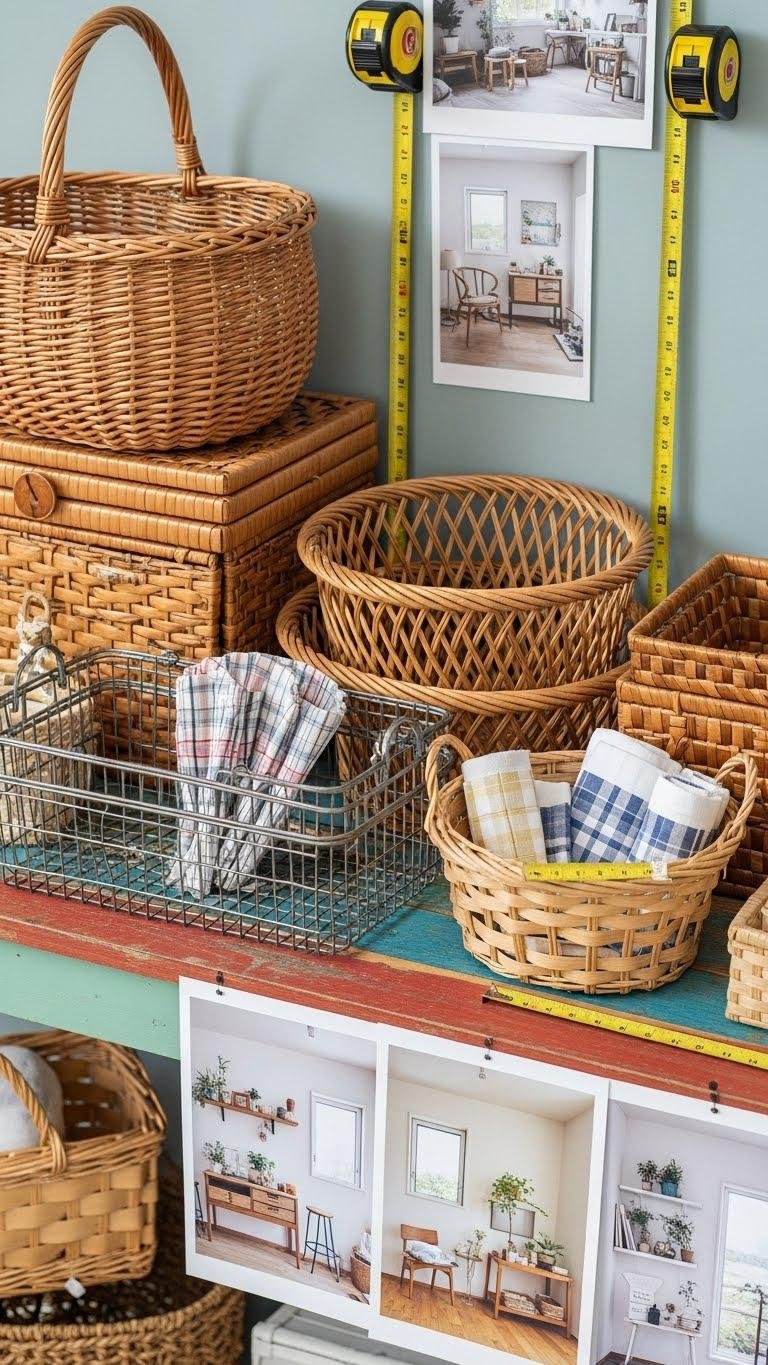 You’ll mix vintage baskets and clever budget finds to create tidy storage, corral linens, and display seasonal accents—choosing pieces that feel personal, practical, and free-spirited.
