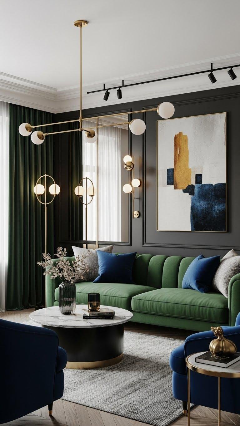 When you drench your living room in emerald and sapphire, you create a luxe, cozy cocoon that still feels modern—think velvety emerald sofas paired with deep sapphire accents, layered with warm brass and matte black for contrast.