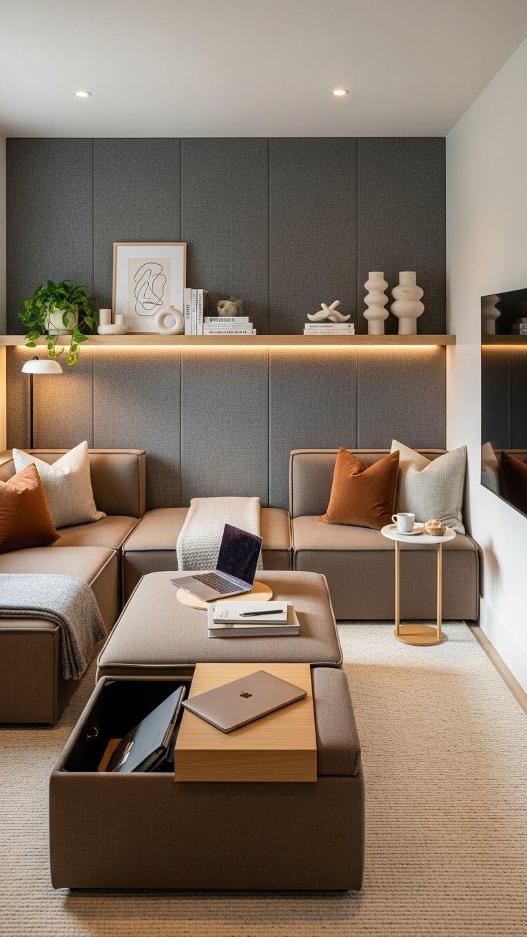 Think beyond a TV — design a media corner that doubles as a cozy reading nook and casual work spot, so every seat feels intentional and Instagram-ready. Choose modular seating, a convertible ottoman for extra storage and impromptu desk space, and low-profile shelves. Add acoustic panels for crisp sound and calm vibes.