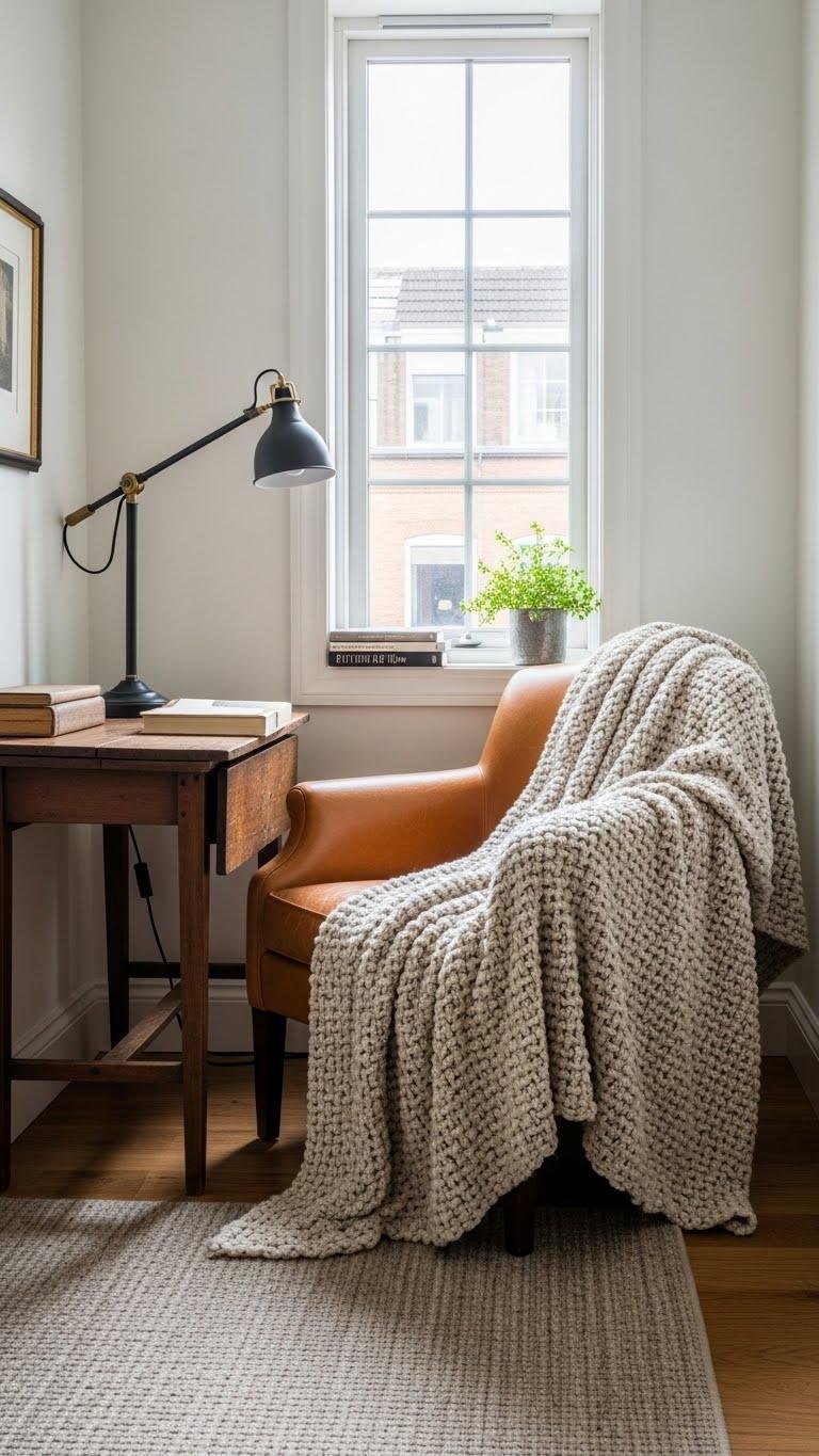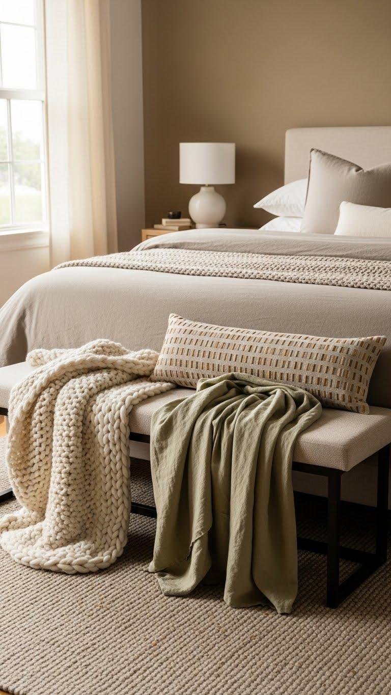 Toss a chunky knit blanket at the foot of your bed to instantly elevate texture and invite touch—its oversized stitches create visual depth and trap warmth without weighing you down. Choose hand knit textures in natural fibers like wool or cotton to balance breathability and insulation.