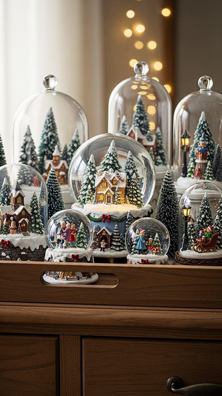 You’ll curate a tasteful display: a compact miniature village under glass domes, mixed heights, and a single lighted piece for focus.
