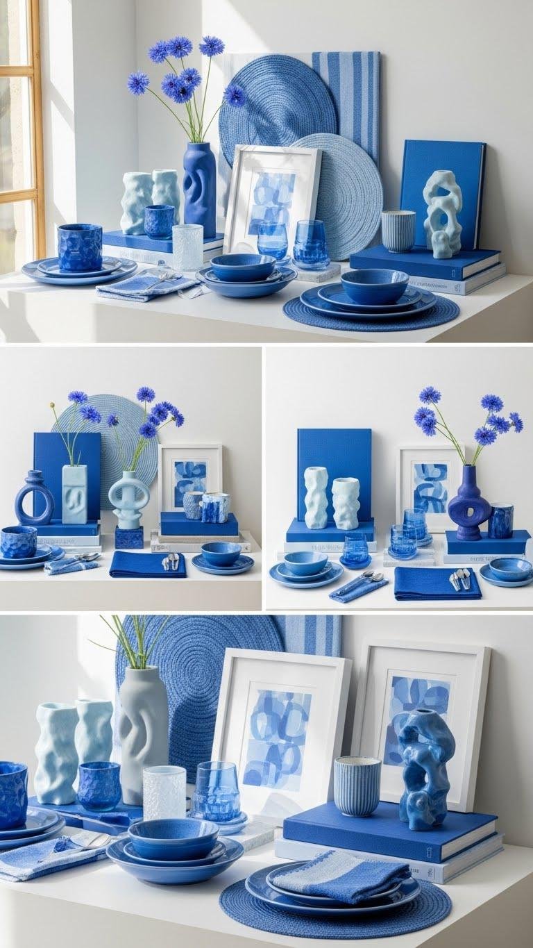 Arrange tonal vignettes—books, bowls, art—so each piece breathes, letting the color feel freeing and fresh throughout your space.