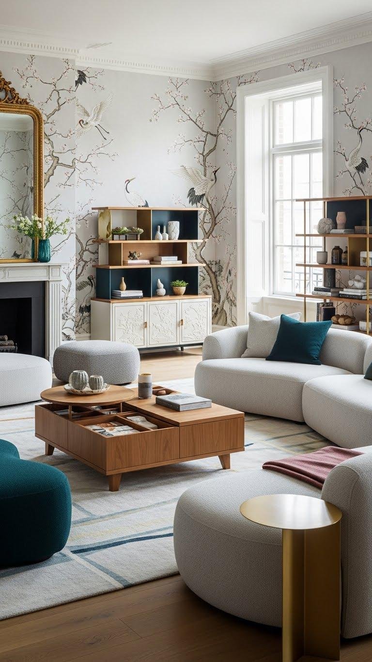 After adding a few chinoiserie accents to lift the room, bring in multifunctional, sculptural furniture to keep the space both beautiful and practical.