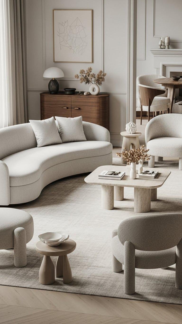 Embrace curves to soften a room’s angles and create instant flow—curved sofas and rounded chairs invite you in, encourage conversation, and read as both modern and timeless.