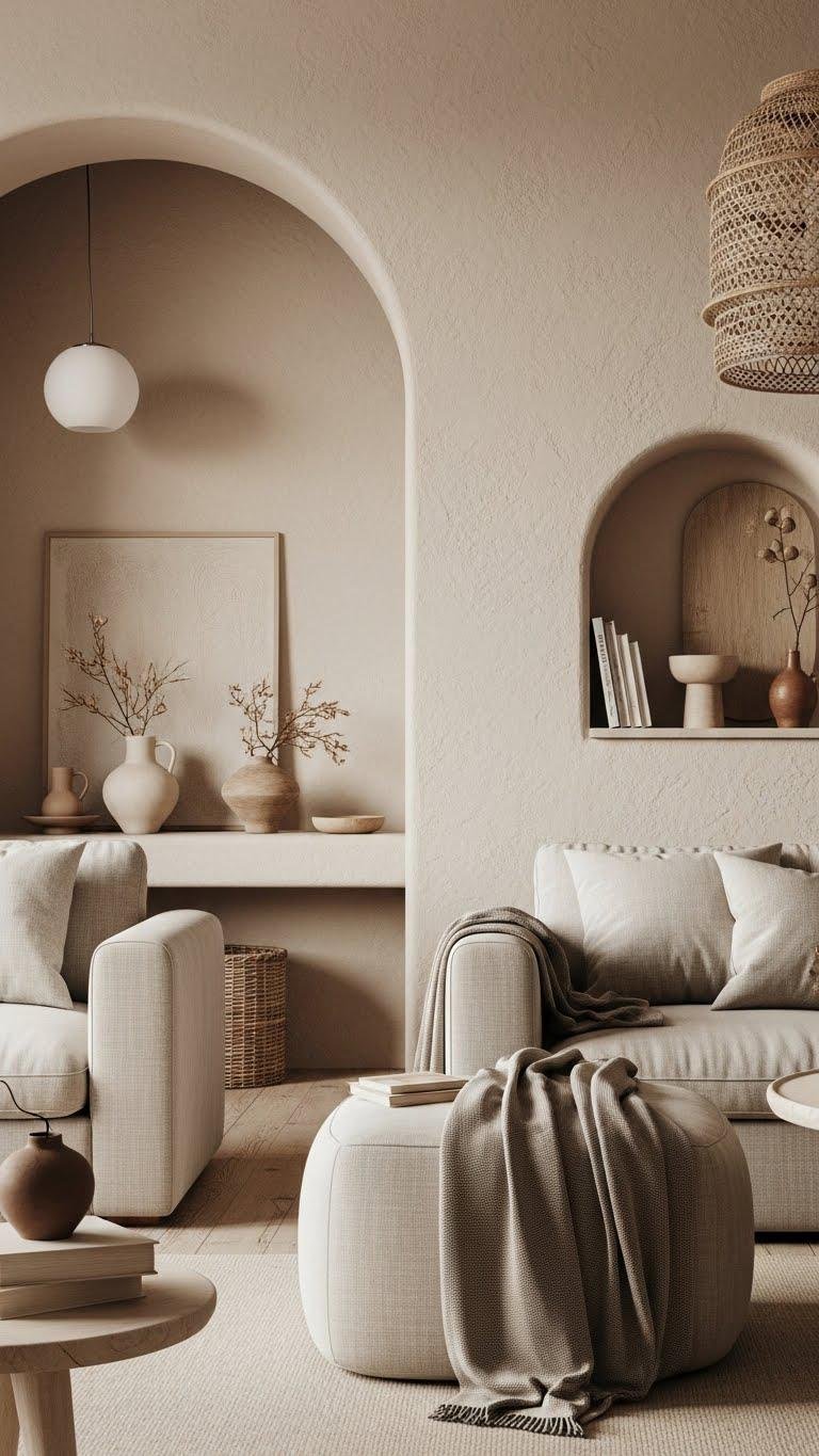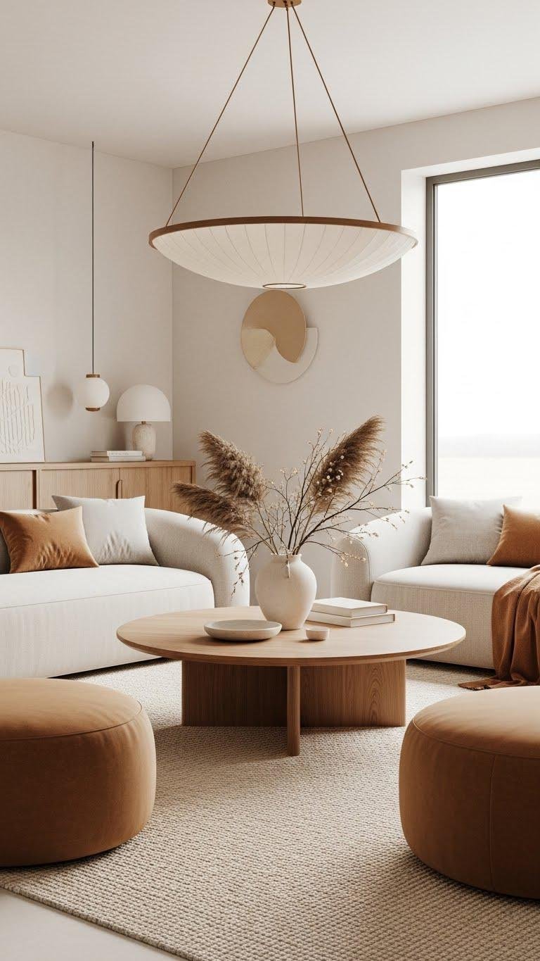 Warm beiges set the calm stage, and introducing ochre and muted terracotta adds gentle warmth and depth without breaking Japandi’s restraint.