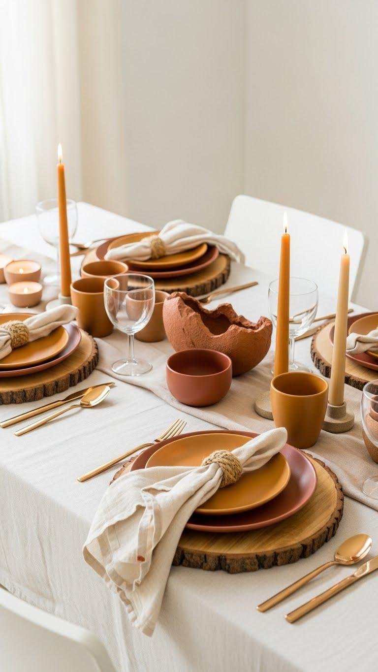 Fold handmade napkins casually, add tapered candles and simple glassware, and let textures and warm hues create an inviting, unpretentious scene that feels both curated and free.