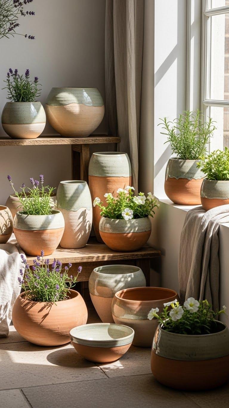 Place a few casually—on shelves, patios, or window sills—to anchor airy neutrals, invite organic rhythm, and let simple, grounded forms free your space without fuss.