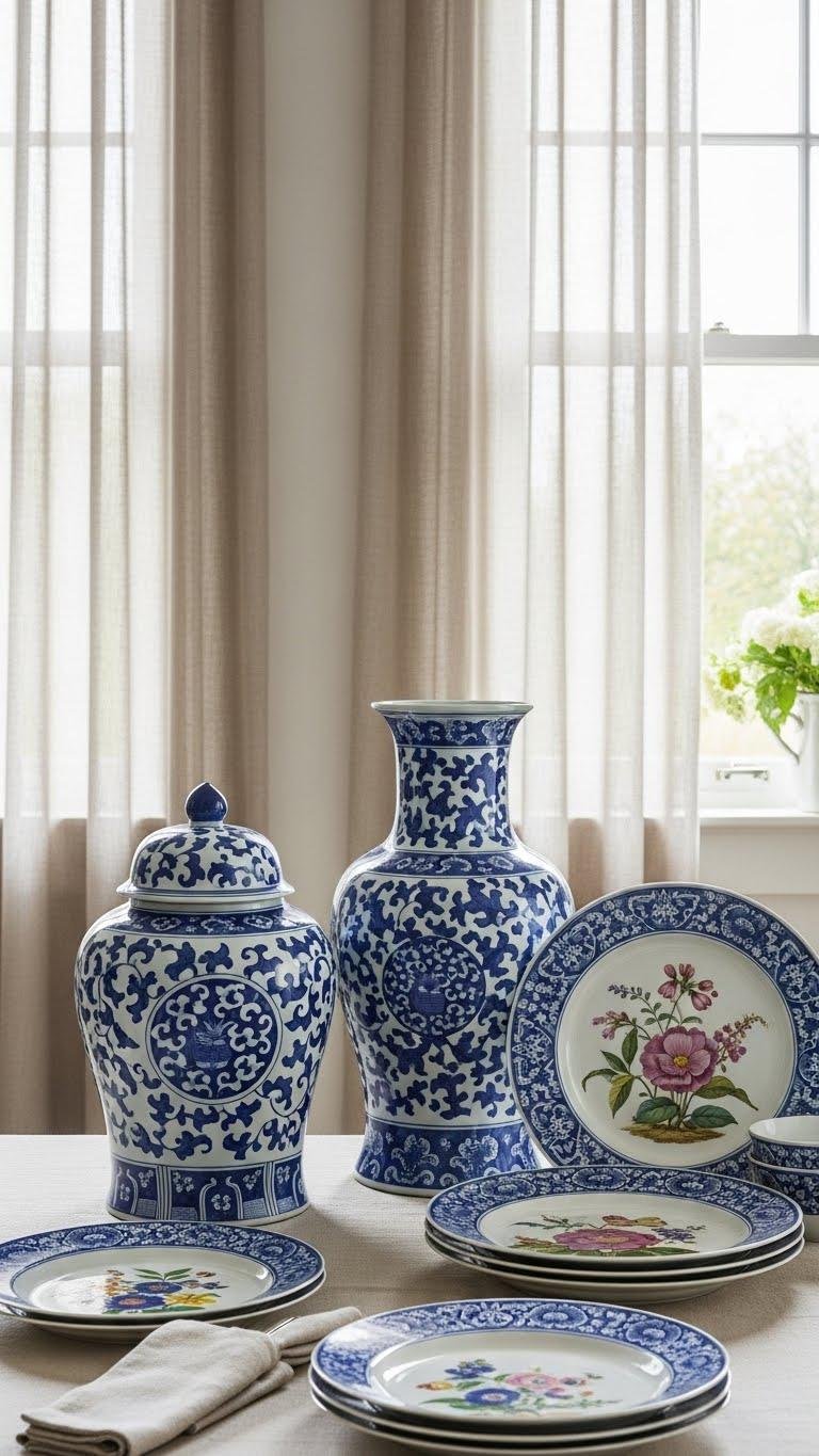 Pair chinoiserie vases with hand-painted botanical plates to give a neutral spring scheme an unexpected, elegant twist. You’ll mix blue and white patterns with airy linens, letting porcelain accents catch light and ground a room. Choose hand painted pieces that feel collected, not staged, so your space breathes — adventurous, relaxed, and unmistakably yours.