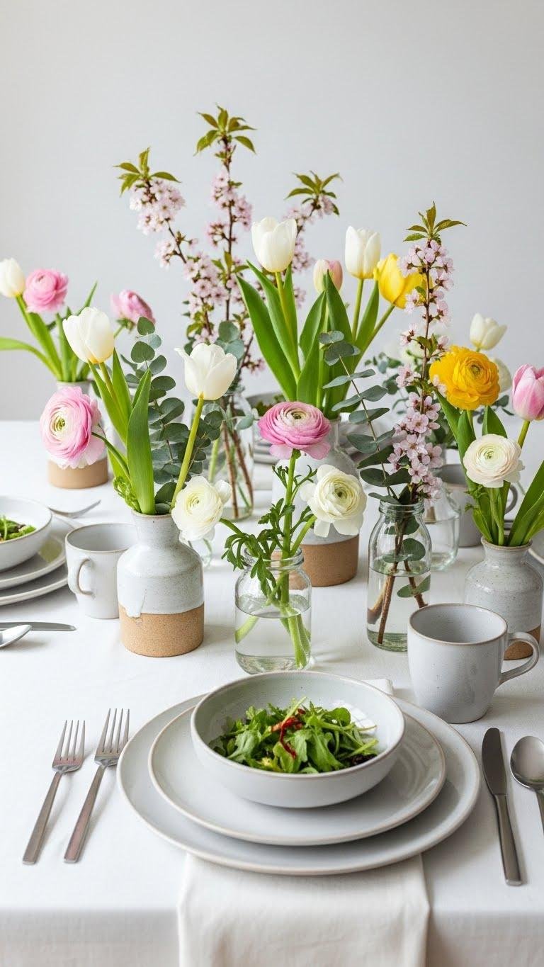 Choose low vases, mix muted stems, and let negative space breathe—this keeps the look timeless, fresh, and effortlessly free-form for gatherings or solitary mornings.