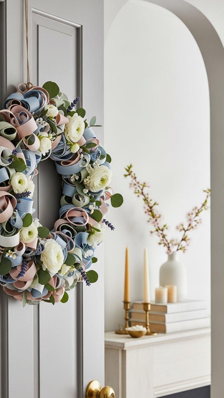 Tie a pastel-ribbon wreath to your door or hang one above a mantel to give neutral spring decor a soft, modern flourish.