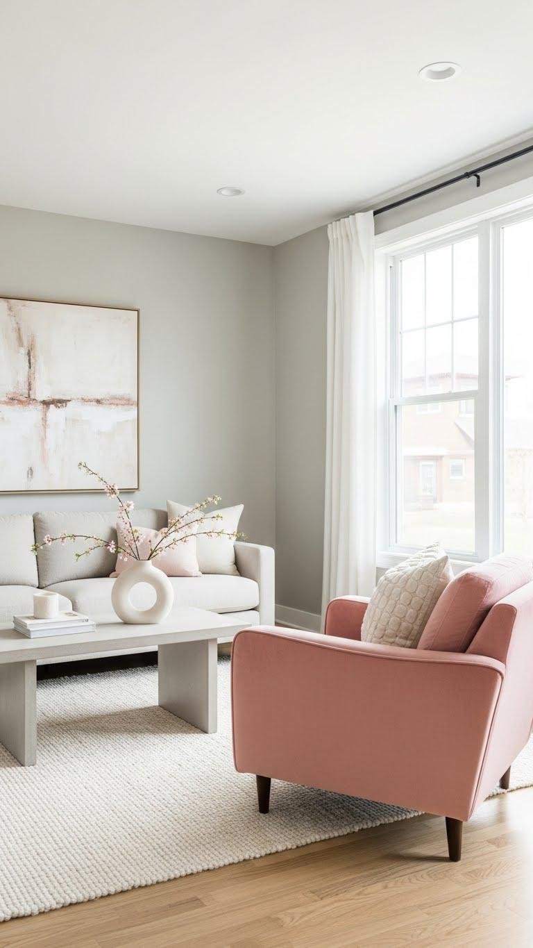 One well-chosen blush pink armchair can instantly elevate a neutral sofa setup, giving the room a focused pop without overwhelming your palette.