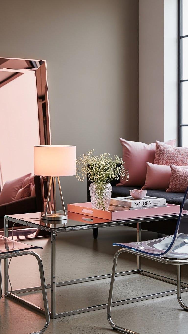 Balancing Digital Pink accessories with polished metal and glass lets you push the color into a high-design register without it feeling saccharine. You’ll place digital accessories—lamps, trays, cushions—with restraint, pairing pink accents against polished metal frames and a considered glass pairing. The result is liberated, precise contrast: bold, modern, tactile, and unmistakably chic without surrendering sophistication.