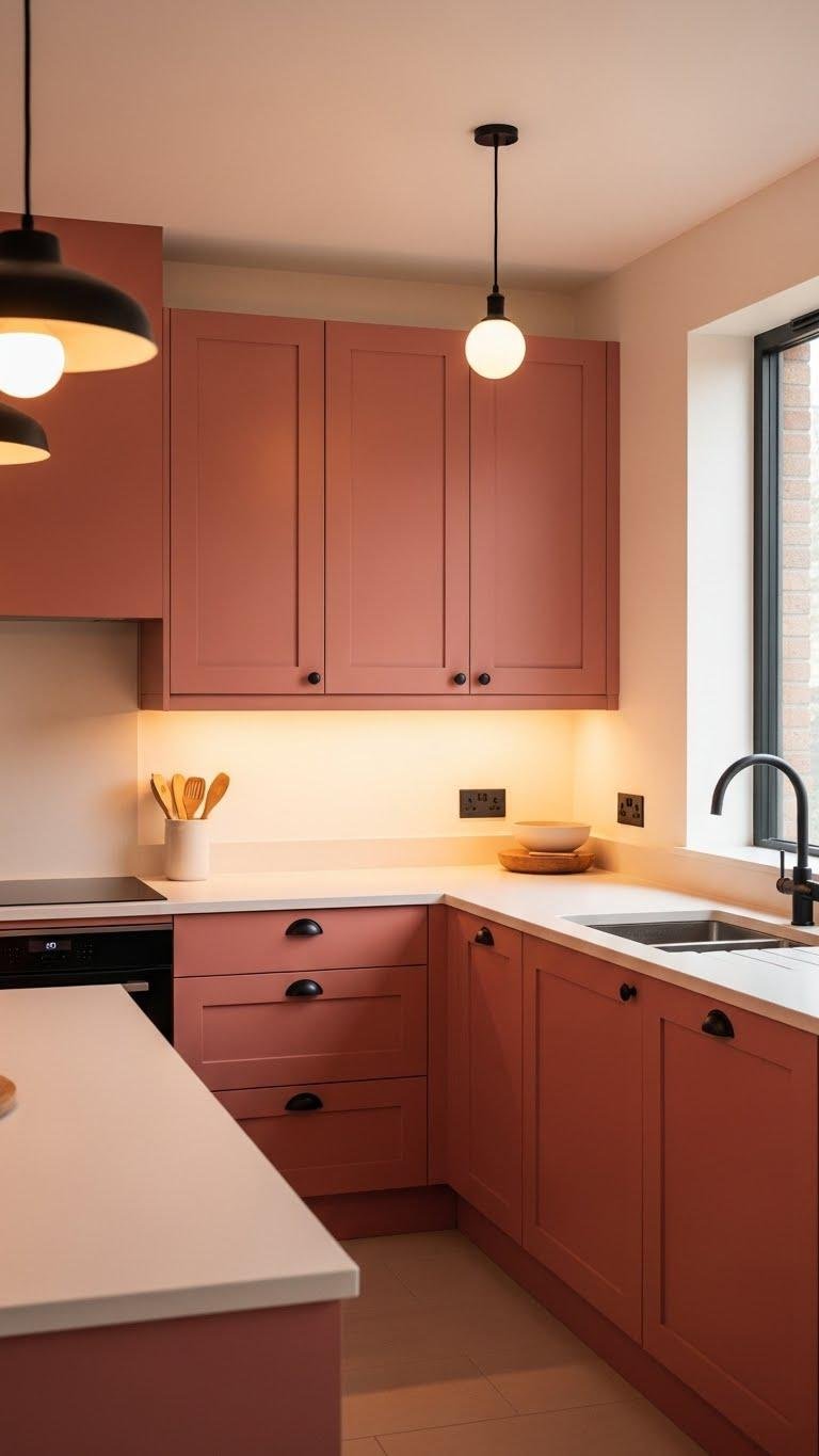 Paint Kitchen Cabinets Sun-Baked Pink With Cream Counters