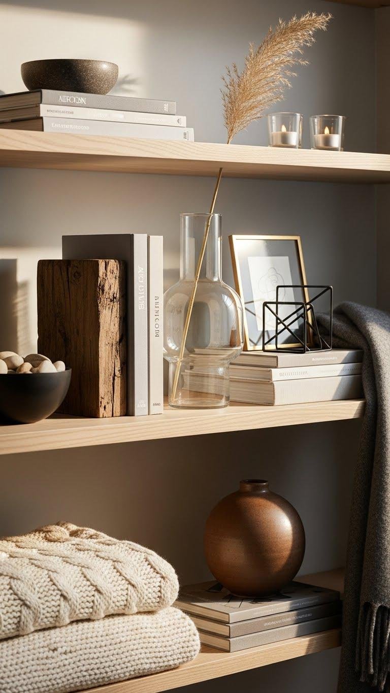 When you layer textures and shapes on your shelf, you create a tactile story that invites touch and lingering looks. You mix soft wool, raw wood, matte metal and glass for tactile contrast, letting unexpected pairings feel effortless.