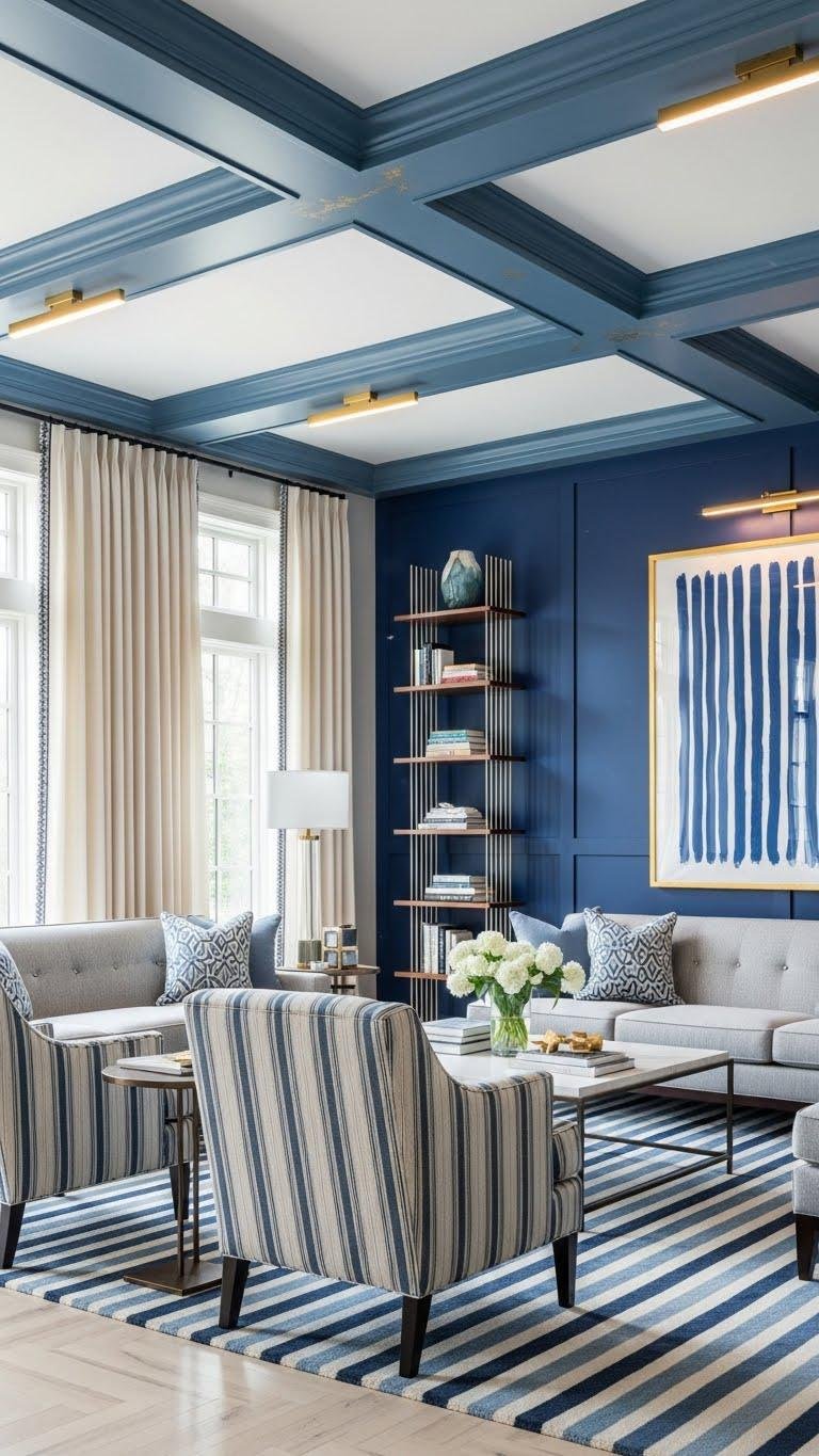 After anchoring a room with one bold wall, look up to make ceilings feel taller and the whole space airier. Paint ceilings a brighter tone, add painted beams to draw the eye upward, or use trompe l’œil cornicing to suggest depth without bulk.