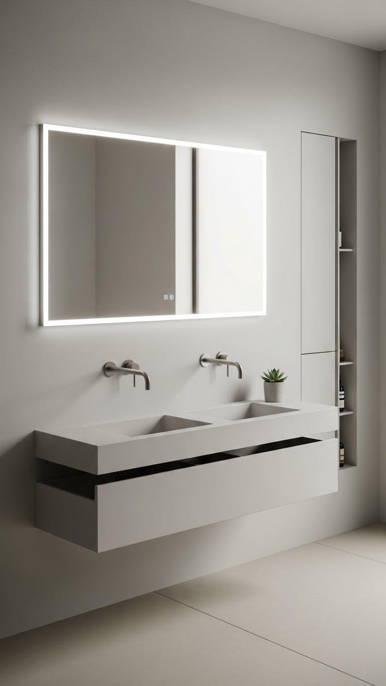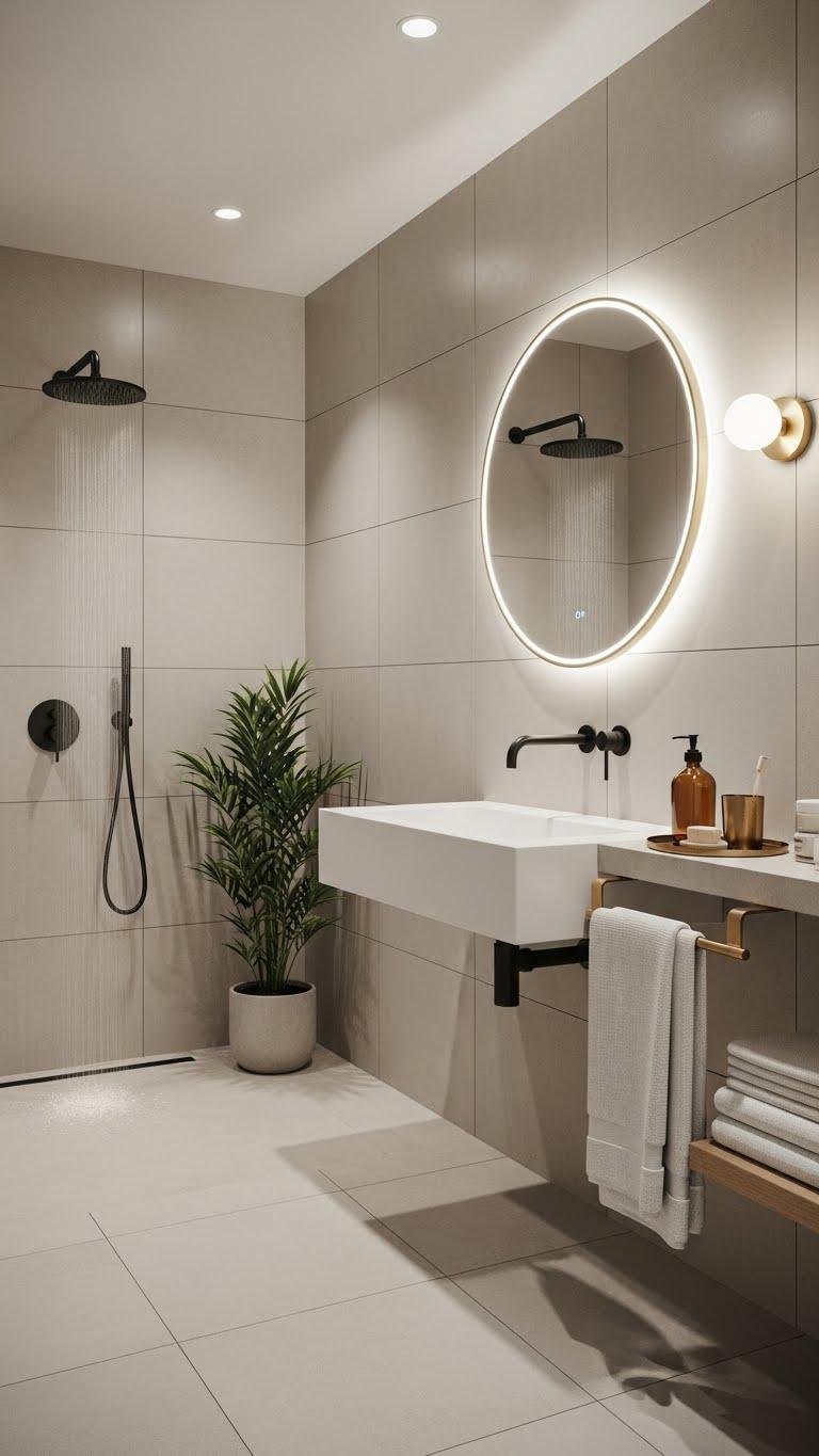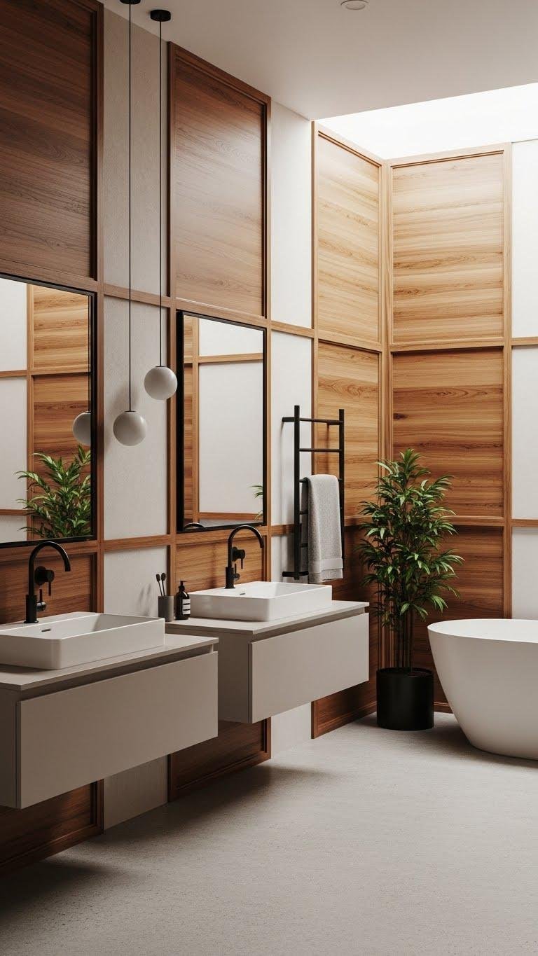 You’ll balance texture with matte metals, floating vanities, and minimal hardware.