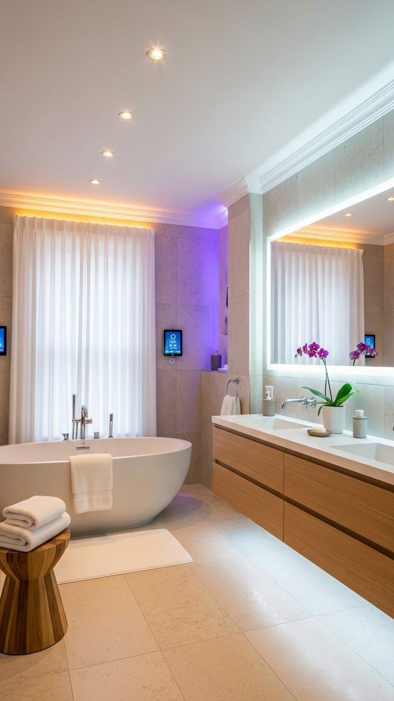 By dialing in layered smart lighting, you can turn your bathroom into a calm, spa-like retreat that responds to your needs—soft, warm downlights for an evening soak, brighter cool white for morning routines, and subtle color washes for mood.