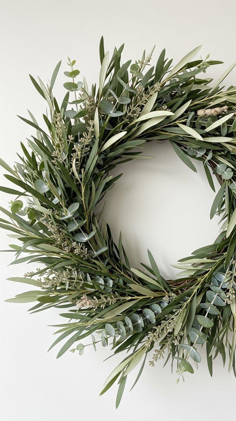 With eucalyptus and olive leaves as your base, you’ll create a spring wreath that feels fresh, modern, and effortless. Go hand tied for an authentic, relaxed look, combining scented eucalyptus with delicate olive spray and a few neutral blooms. Aim for a minimalist wreath silhouette that breathes — easy to hang, low-maintenance, and perfectly suited to a free, unfussy entryway.